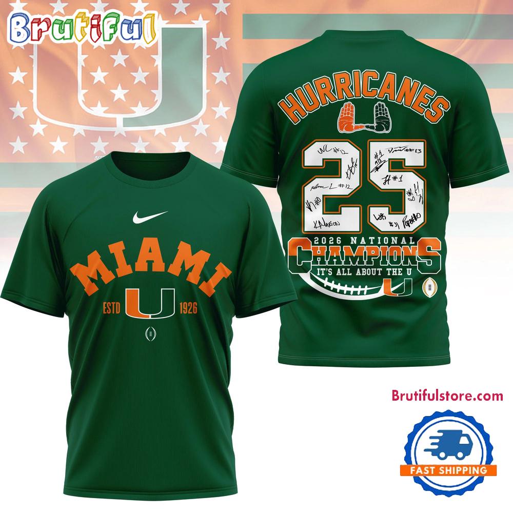 Miami Hurricanes NCAA 2026 CFP National Champions Signature 3D Shirt The 3D Hoodie is a fashion statement that goes beyond the ordinary. Using advanced printing technology, it brings designs to life with depth and vividness. Crafted from high-quality materials, it offers comfort and durability. The three-dimensional graphics create a captivating effect that’s perfect for casual wear or making a bold statement. Whether you’re expressing your fandom or showcasing your unique taste, the 3D Hoodie is a wearable work of art that sets you apart from the crowd. Embrace both style and individuality with this distinctive fashion piece.