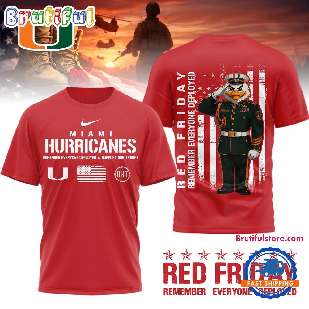 Product details: Miami Hurricanes NCAA Red Friday Remember Everyone Deployed Limited 3D Shirt