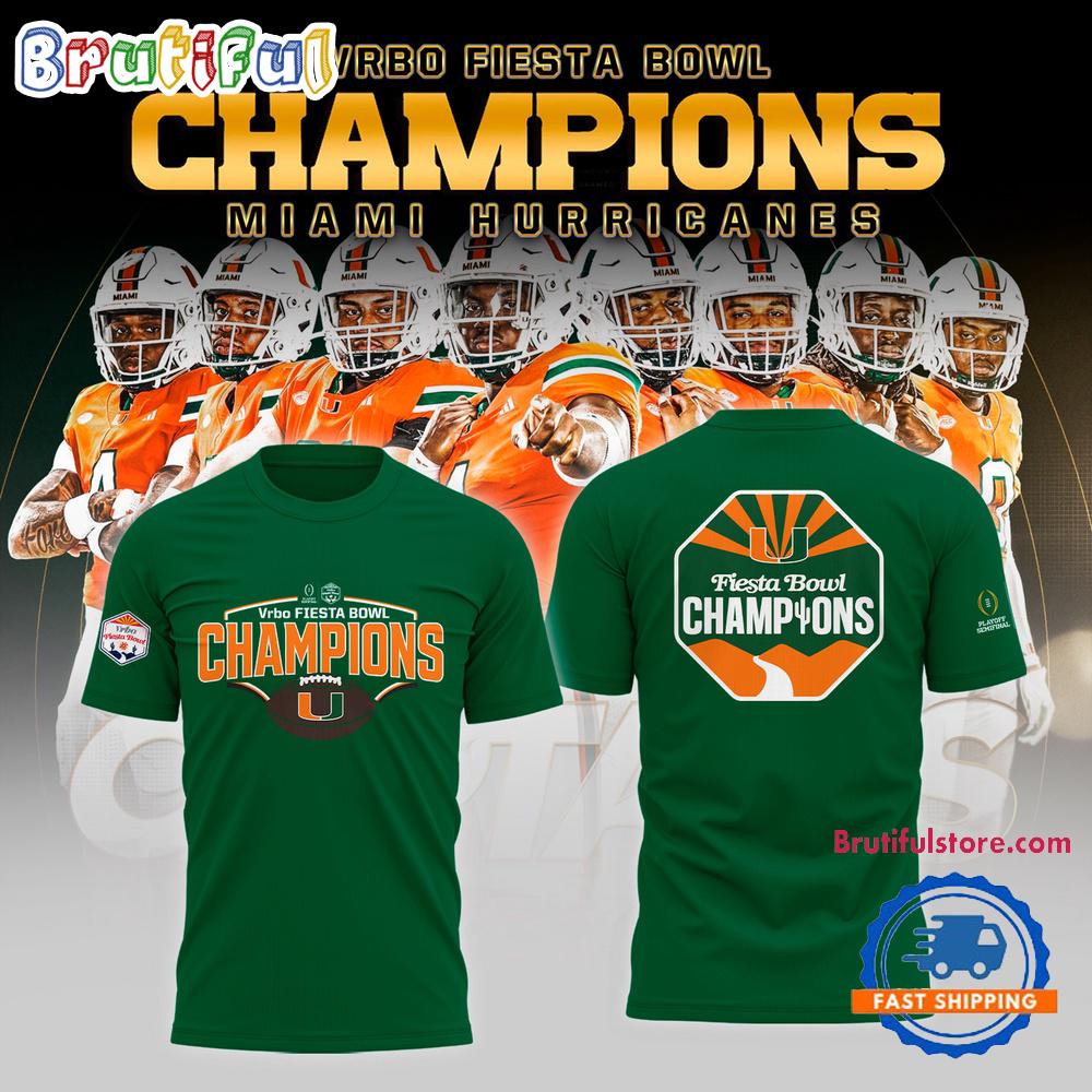Miami Hurricanes VRBO FIESTA BOWL Champions 2026 Limited Edition T Shirt The 3D Hoodie is a fashion statement that goes beyond the ordinary. Using advanced printing technology, it brings designs to life with depth and vividness. Crafted from high-quality materials, it offers comfort and durability. The three-dimensional graphics create a captivating effect that’s perfect for casual wear or making a bold statement. Whether you’re expressing your fandom or showcasing your unique taste, the 3D Hoodie is a wearable work of art that sets you apart from the crowd. Embrace both style and individuality with this distinctive fashion piece.