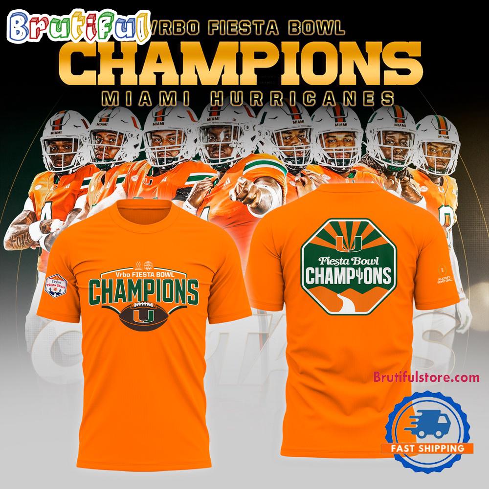 Miami Hurricanes VRBO FIESTA BOWL Champions 2026 T Shirt The 3D Hoodie is a fashion statement that goes beyond the ordinary. Using advanced printing technology, it brings designs to life with depth and vividness. Crafted from high-quality materials, it offers comfort and durability. The three-dimensional graphics create a captivating effect that’s perfect for casual wear or making a bold statement. Whether you’re expressing your fandom or showcasing your unique taste, the 3D Hoodie is a wearable work of art that sets you apart from the crowd. Embrace both style and individuality with this distinctive fashion piece.