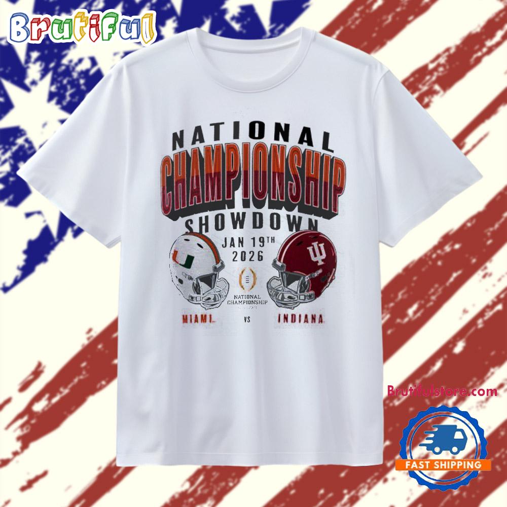 Photos Of Miami Hurricanes vs. Indiana Hoosiers CFP 2026 National Championship Game Matchup Showdown T Shirt