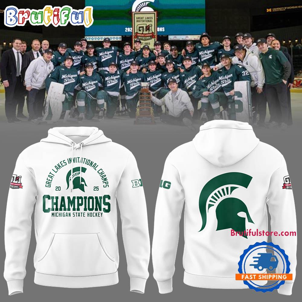 Photos Of Michigan State Hockey 2025 Great Lakes Invitational Champions White Hoodie