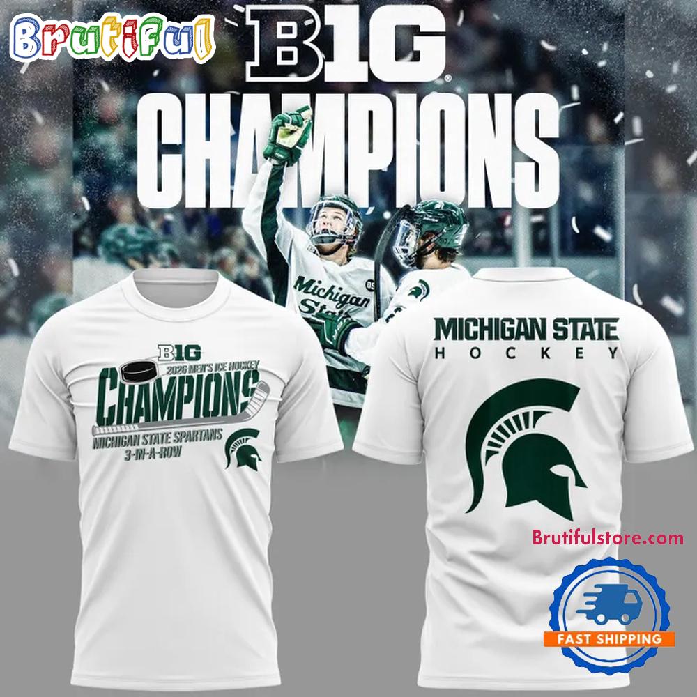 Michigan State Spartans 2026 back-to-back-to-back Big Ten Hockey Champions Special New T Shirt The 3D Hoodie is a fashion statement that goes beyond the ordinary. Using advanced printing technology, it brings designs to life with depth and vividness. Crafted from high-quality materials, it offers comfort and durability. The three-dimensional graphics create a captivating effect that’s perfect for casual wear or making a bold statement. Whether you’re expressing your fandom or showcasing your unique taste, the 3D Hoodie is a wearable work of art that sets you apart from the crowd. Embrace both style and individuality with this distinctive fashion piece.