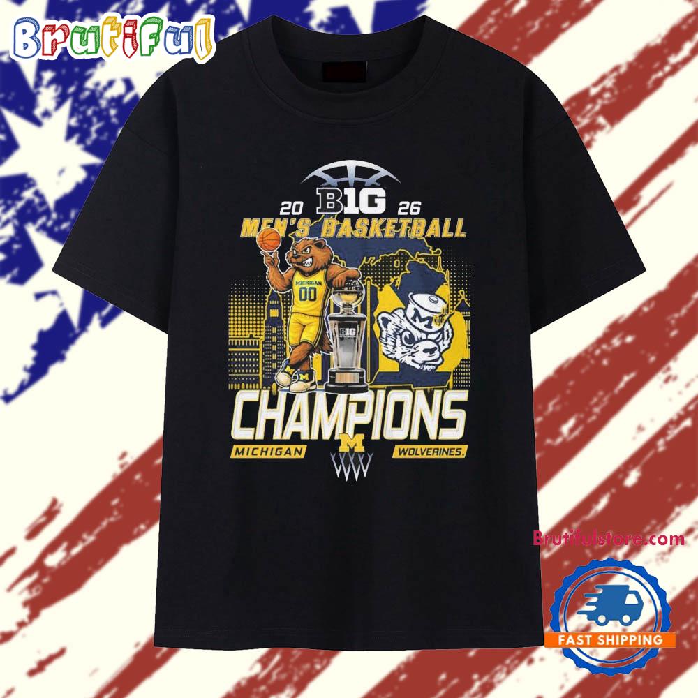 Photos Of Michigan Wolverines 2026 Big Ten Men’s Basketball Season Champions Mascot Trophy T Shirt