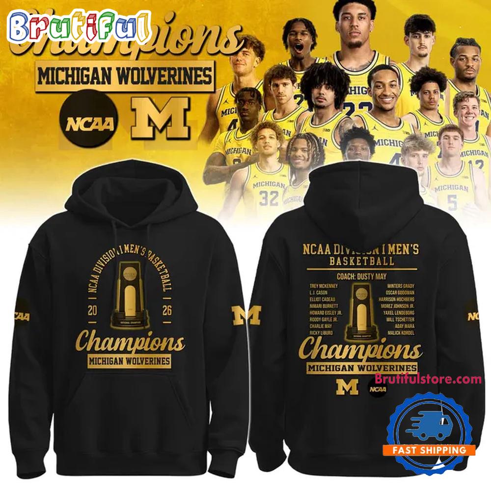Product details: Michigan Wolverines 2026 NCAA Men’s Basketball National Champions Black Hoodie