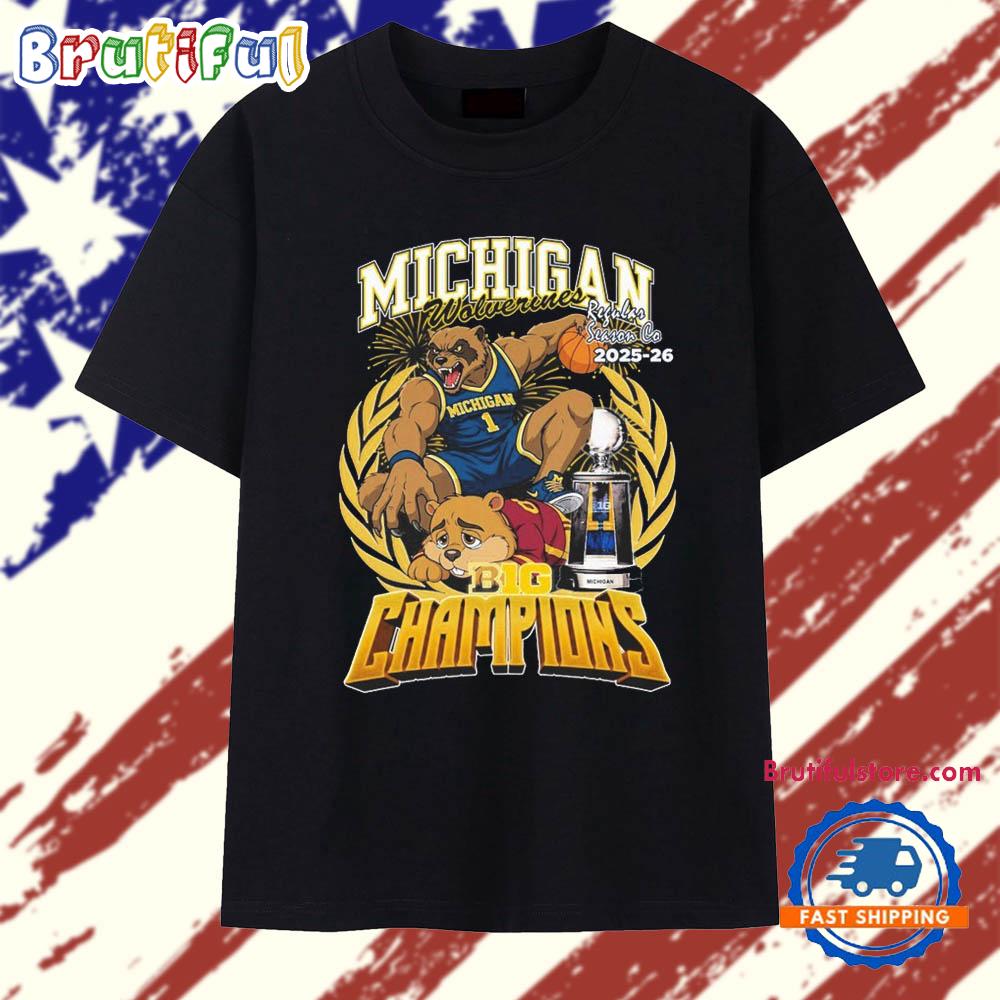 Photos Of Michigan Wolverines Regular Season Co 2025-26 Big Ten Champions Mascot Trophy T Shirt