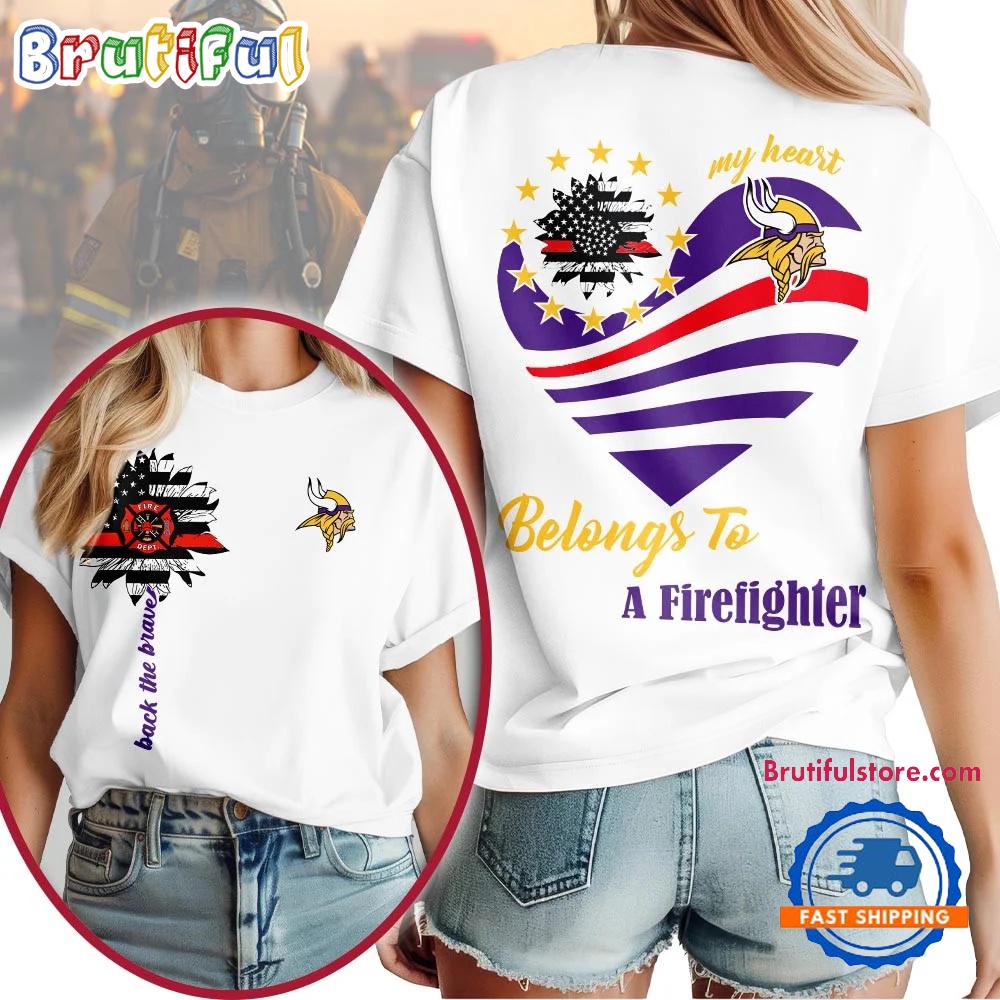 Product details: Minnesota Vikings 2026 NFL My Heart Belongs To A Firefighter Unisex T Shirt