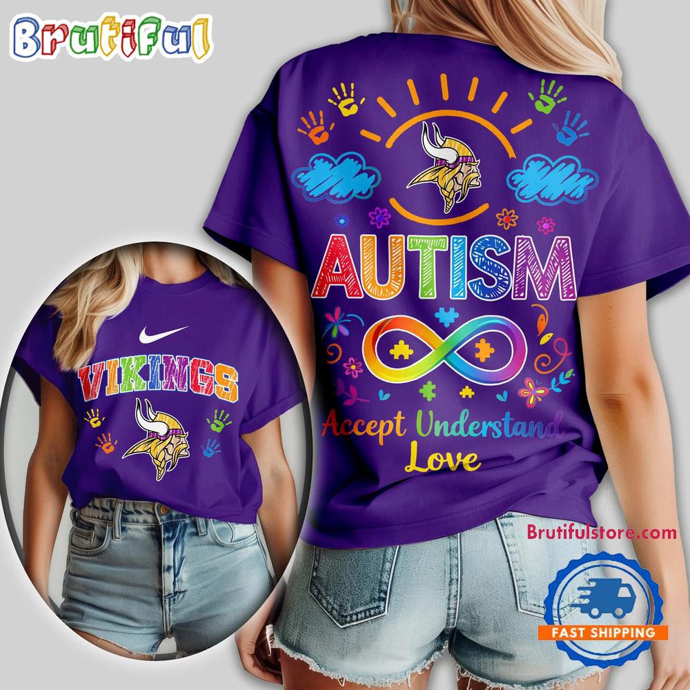 Product details: Minnesota Vikings 2026 NFL National Autism Acceptance Month Design 3D T Shirt