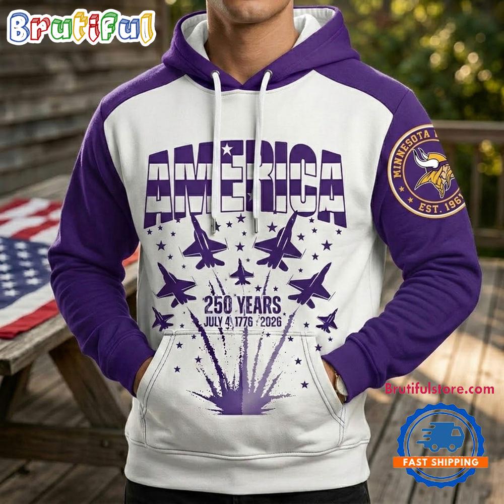 Minnesota Vikings 250th Anniversary of US All Over Printed Hoodie Shirt The 3D Hoodie is a fashion statement that goes beyond the ordinary. Using advanced printing technology, it brings designs to life with depth and vividness. Crafted from high-quality materials, it offers comfort and durability. The three-dimensional graphics create a captivating effect that’s perfect for casual wear or making a bold statement. Whether you’re expressing your fandom or showcasing your unique taste, the 3D Hoodie is a wearable work of art that sets you apart from the crowd. Embrace both style and individuality with this distinctive fashion piece.