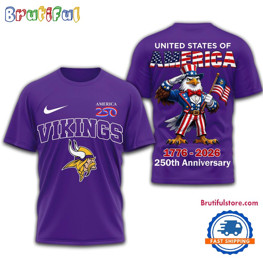 Product details: Minnesota Vikings NFL United States of American 250th Anniversary 3D T Shirt