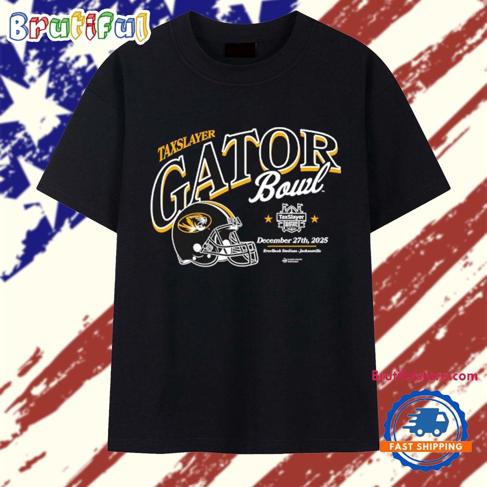 Product details: Missouri Tigers 2025 Taxslayer Gator Bowl helmet T Shirt