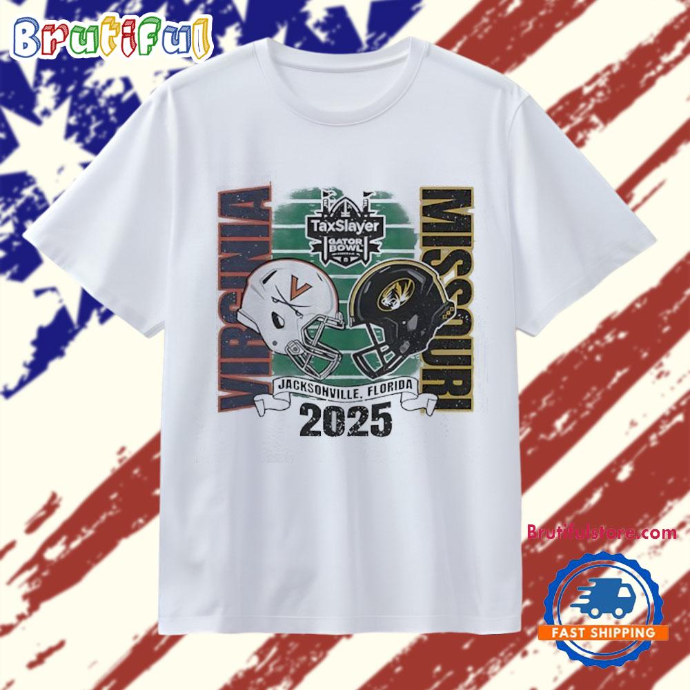 Product details: Missouri Tigers vs Virginia Cavaliers 2025 Gator Bowl helmet T Shirt