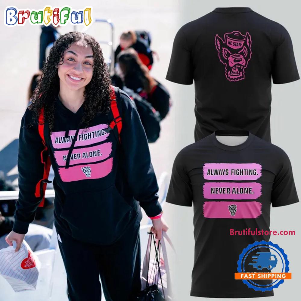 NC State Wolfpack Basketball Always Fighting Never Alone T Shirt The 3D Hoodie is a fashion statement that goes beyond the ordinary. Using advanced printing technology, it brings designs to life with depth and vividness. Crafted from high-quality materials, it offers comfort and durability. The three-dimensional graphics create a captivating effect that’s perfect for casual wear or making a bold statement. Whether you’re expressing your fandom or showcasing your unique taste, the 3D Hoodie is a wearable work of art that sets you apart from the crowd. Embrace both style and individuality with this distinctive fashion piece.