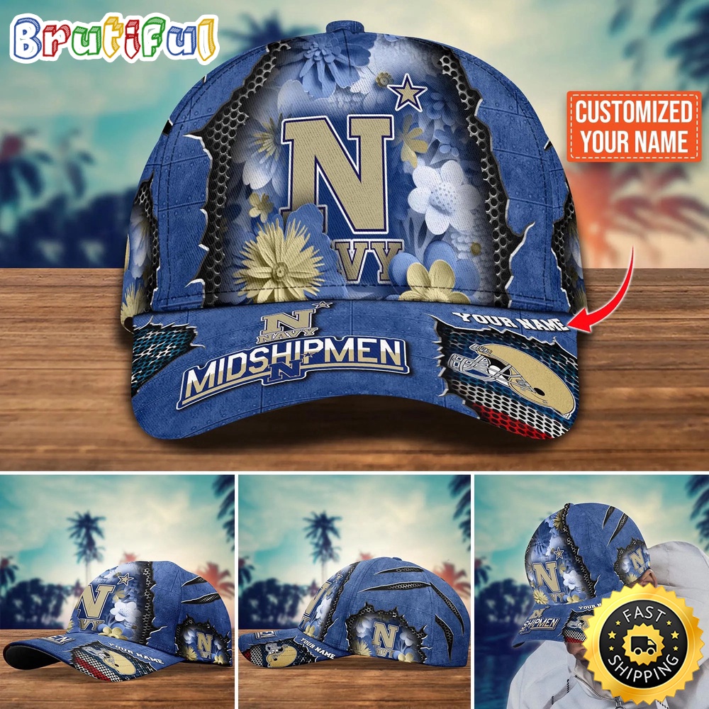 NCAA Navy Midshipmen Baseball Cap Flag Flower Custom Name Cap