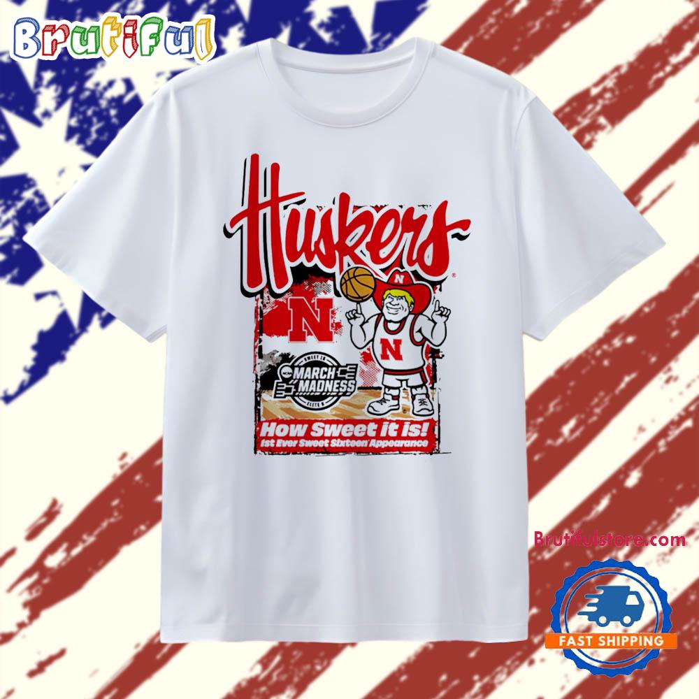 Product details: Nebraska Cornhuskers 2026 NCAA March Madness First Ever Sweet 16 how sweet it is T Shirt