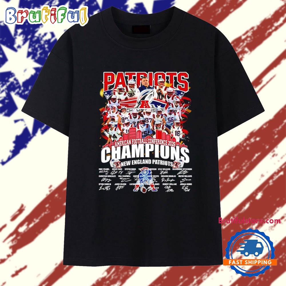New England Patriots 2026 AFC Champions all team graphic T Shirt Make a bold statement with our 2D Shirt. Crafted from premium, lightweight fabric, it offers all-day comfort and a modern fit. Featuring eye-catching, high-resolution designs, this shirt is perfect for casual wear or standing out at events. Style meets personality with this unique wardrobe must-have.