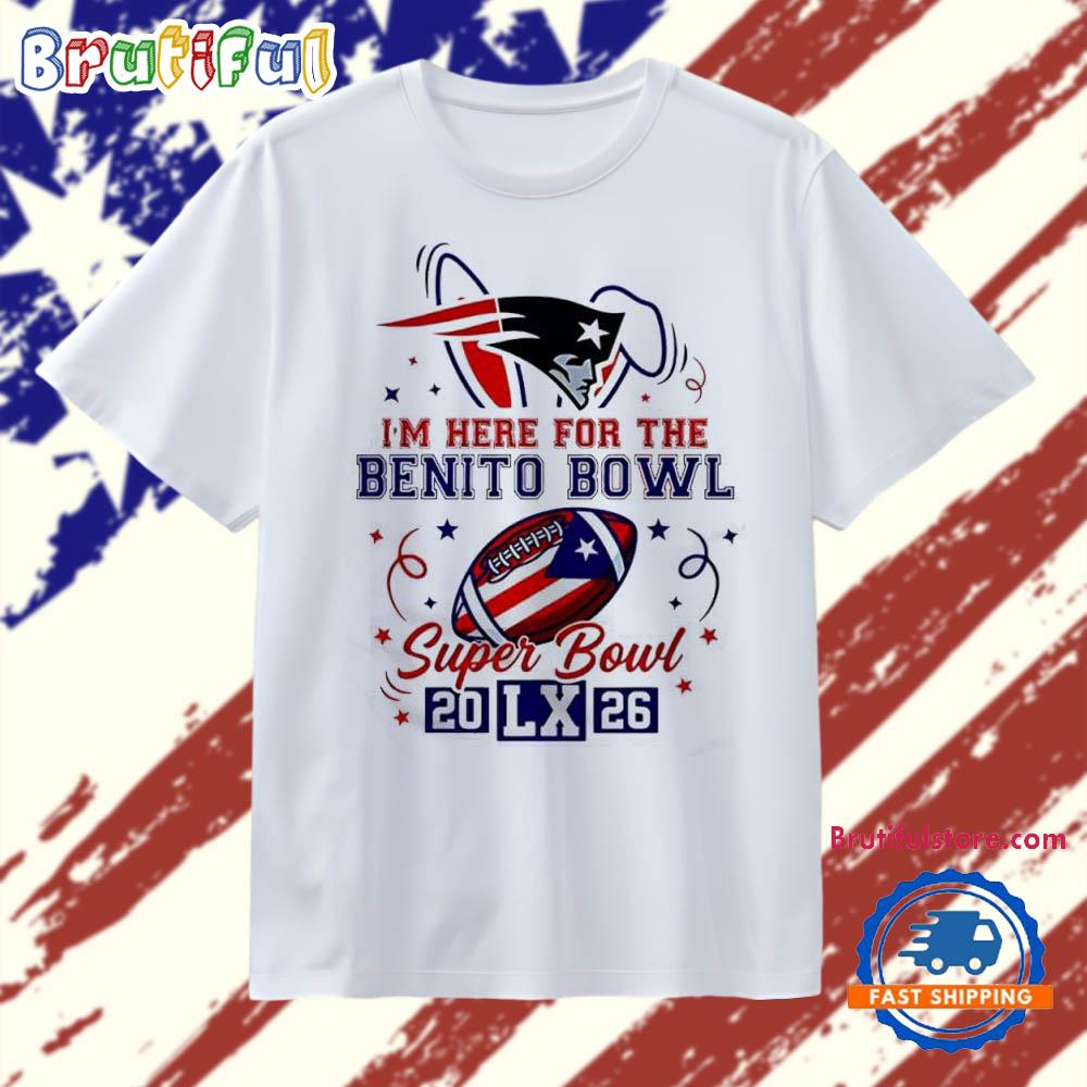 Product details: New England Patriots I’m here for the Benito Bowl Super Bowl 20 LX 26 T Shirt