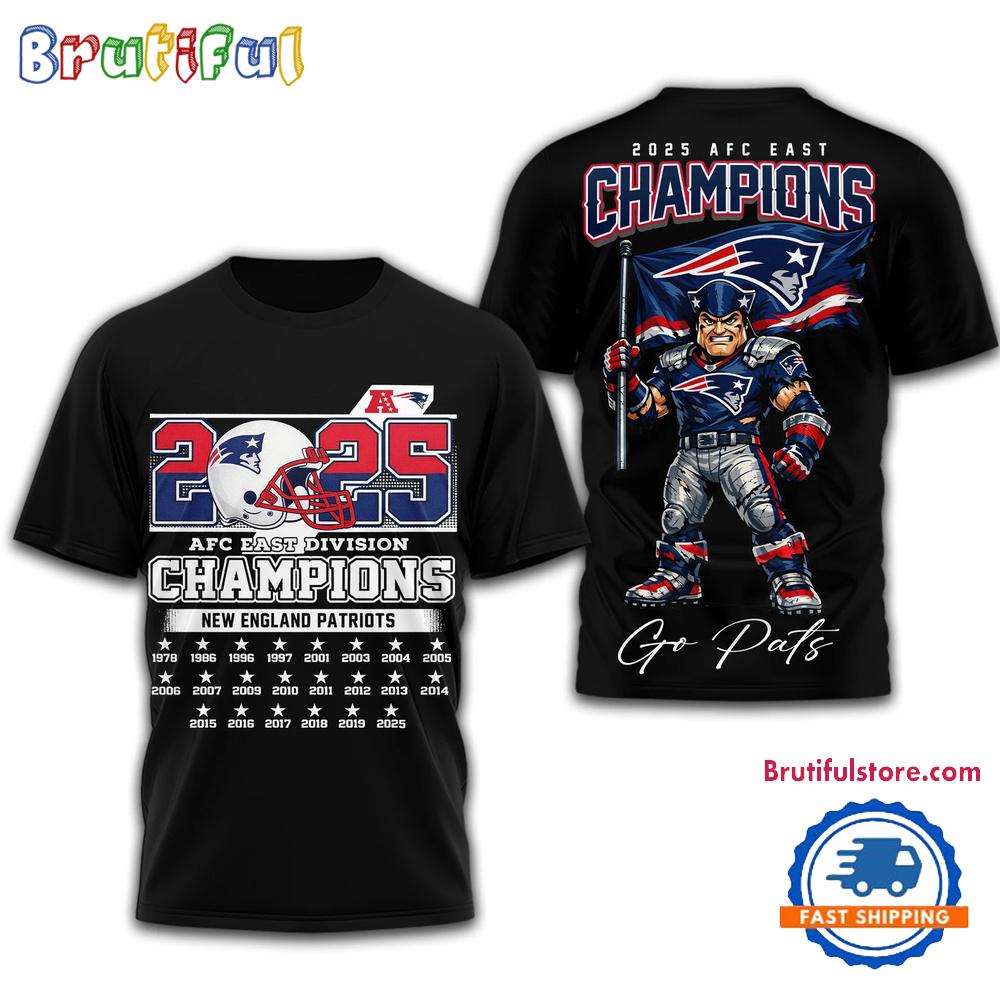 New England Patriots NFL 2025 AFC East Champions Mascot Black T Shirt The 3D Hoodie is a fashion statement that goes beyond the ordinary. Using advanced printing technology, it brings designs to life with depth and vividness. Crafted from high-quality materials, it offers comfort and durability. The three-dimensional graphics create a captivating effect that’s perfect for casual wear or making a bold statement. Whether you’re expressing your fandom or showcasing your unique taste, the 3D Hoodie is a wearable work of art that sets you apart from the crowd. Embrace both style and individuality with this distinctive fashion piece.