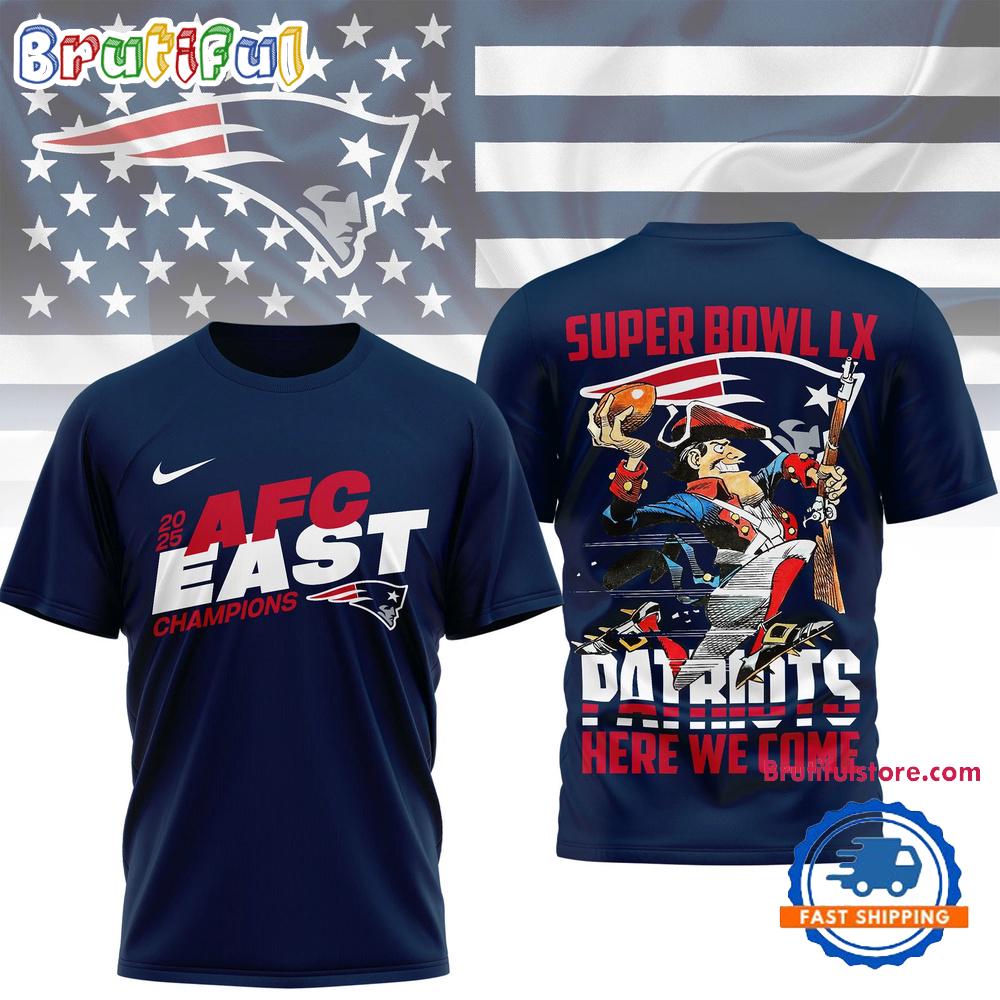 Product details: New England Patriots NFL 2025 Division Champions 3D Shirt, Super Bowl LX Patriots Here We Come Shirt