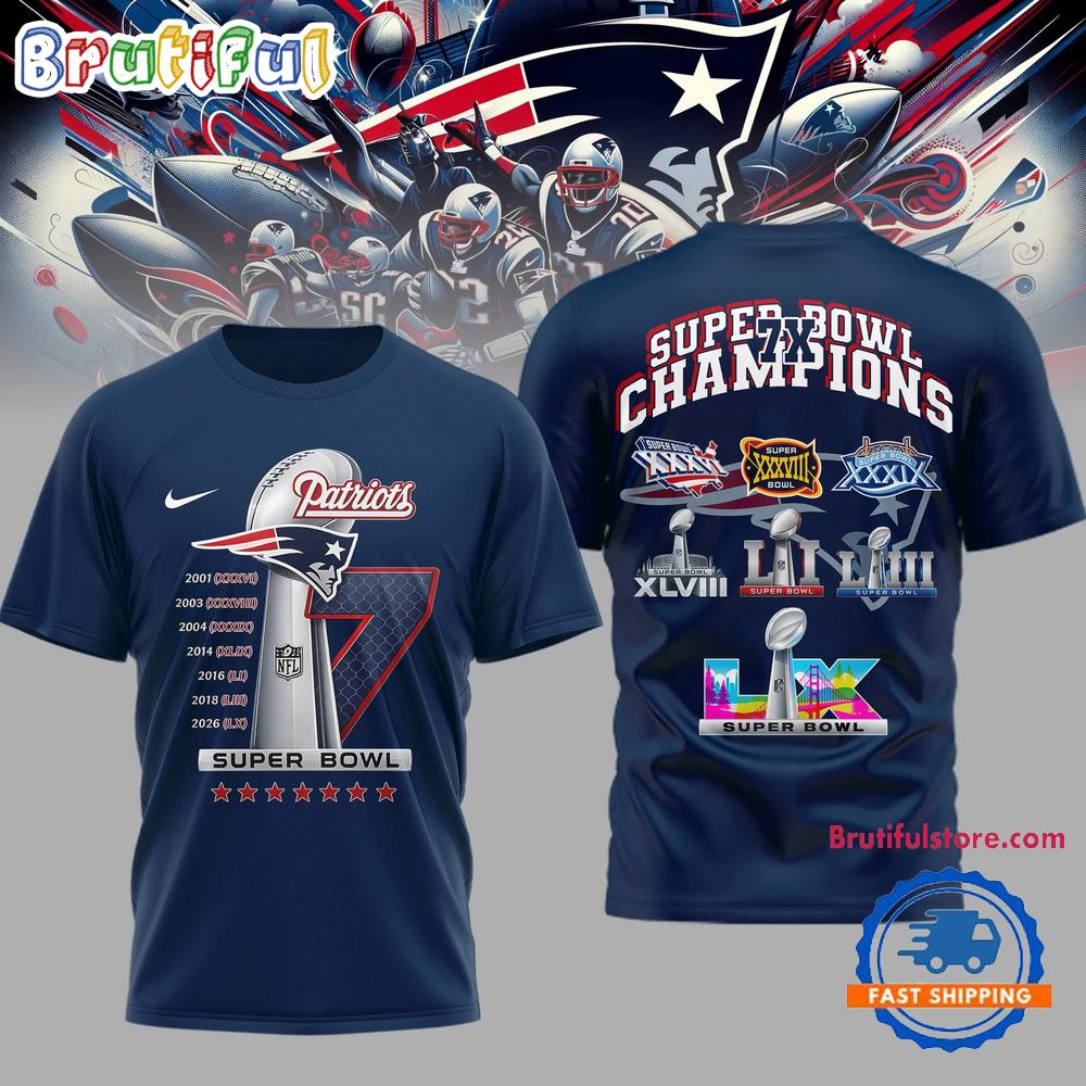New England Patriots NFL 2026 7x Super Bowl Champions 3D Shirt The 3D Hoodie is a fashion statement that goes beyond the ordinary. Using advanced printing technology, it brings designs to life with depth and vividness. Crafted from high-quality materials, it offers comfort and durability. The three-dimensional graphics create a captivating effect that’s perfect for casual wear or making a bold statement. Whether you’re expressing your fandom or showcasing your unique taste, the 3D Hoodie is a wearable work of art that sets you apart from the crowd. Embrace both style and individuality with this distinctive fashion piece.