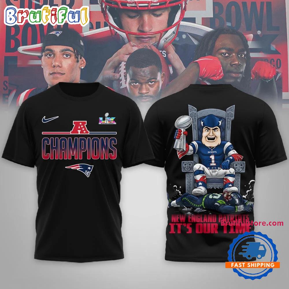 Photos Of New England Patriots NFL 2026 Super Bowl LX It’s Our Time Black T Shirt