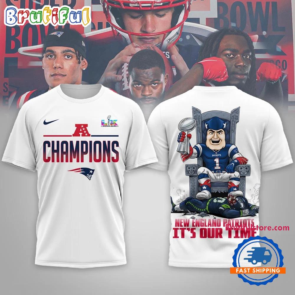 New England Patriots NFL 2026 Super Bowl LX It’s Our Time White T Shirt The 3D Hoodie is a fashion statement that goes beyond the ordinary. Using advanced printing technology, it brings designs to life with depth and vividness. Crafted from high-quality materials, it offers comfort and durability. The three-dimensional graphics create a captivating effect that’s perfect for casual wear or making a bold statement. Whether you’re expressing your fandom or showcasing your unique taste, the 3D Hoodie is a wearable work of art that sets you apart from the crowd. Embrace both style and individuality with this distinctive fashion piece.