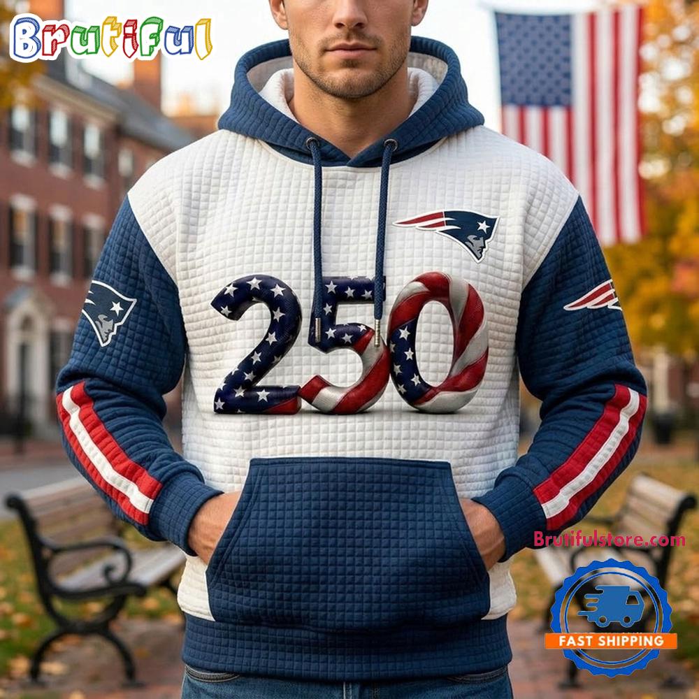 New England Patriots US 250th Anniversary Waffle Texture Strike Hoodie Shirt The 3D Hoodie is a fashion statement that goes beyond the ordinary. Using advanced printing technology, it brings designs to life with depth and vividness. Crafted from high-quality materials, it offers comfort and durability. The three-dimensional graphics create a captivating effect that’s perfect for casual wear or making a bold statement. Whether you’re expressing your fandom or showcasing your unique taste, the 3D Hoodie is a wearable work of art that sets you apart from the crowd. Embrace both style and individuality with this distinctive fashion piece.