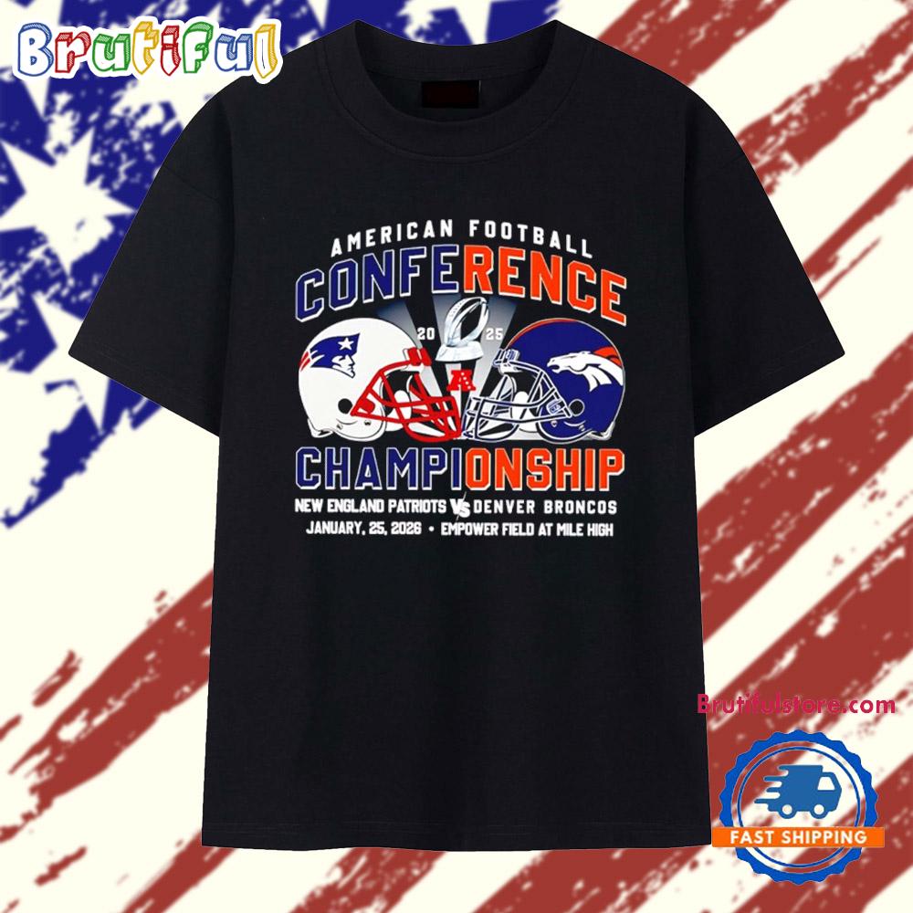New England Patriots vs Denver Broncos 2025 AFC Championship helmets T Shirt Make a bold statement with our 2D Shirt. Crafted from premium, lightweight fabric, it offers all-day comfort and a modern fit. Featuring eye-catching, high-resolution designs, this shirt is perfect for casual wear or standing out at events. Style meets personality with this unique wardrobe must-have.
