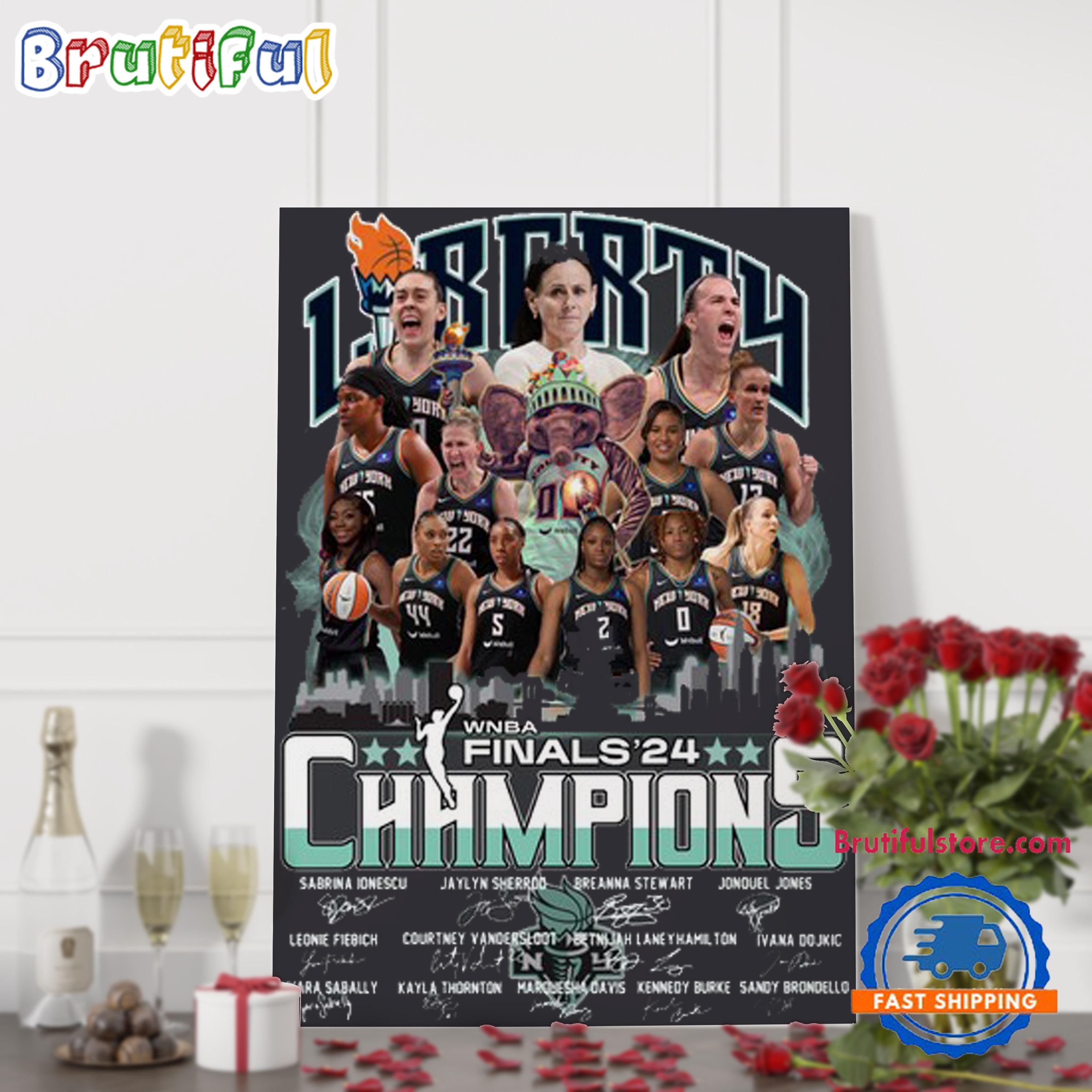 Product details: New York Liberty WNBA Finals 2024 Champions Basketball Signature Poster Canvas Art