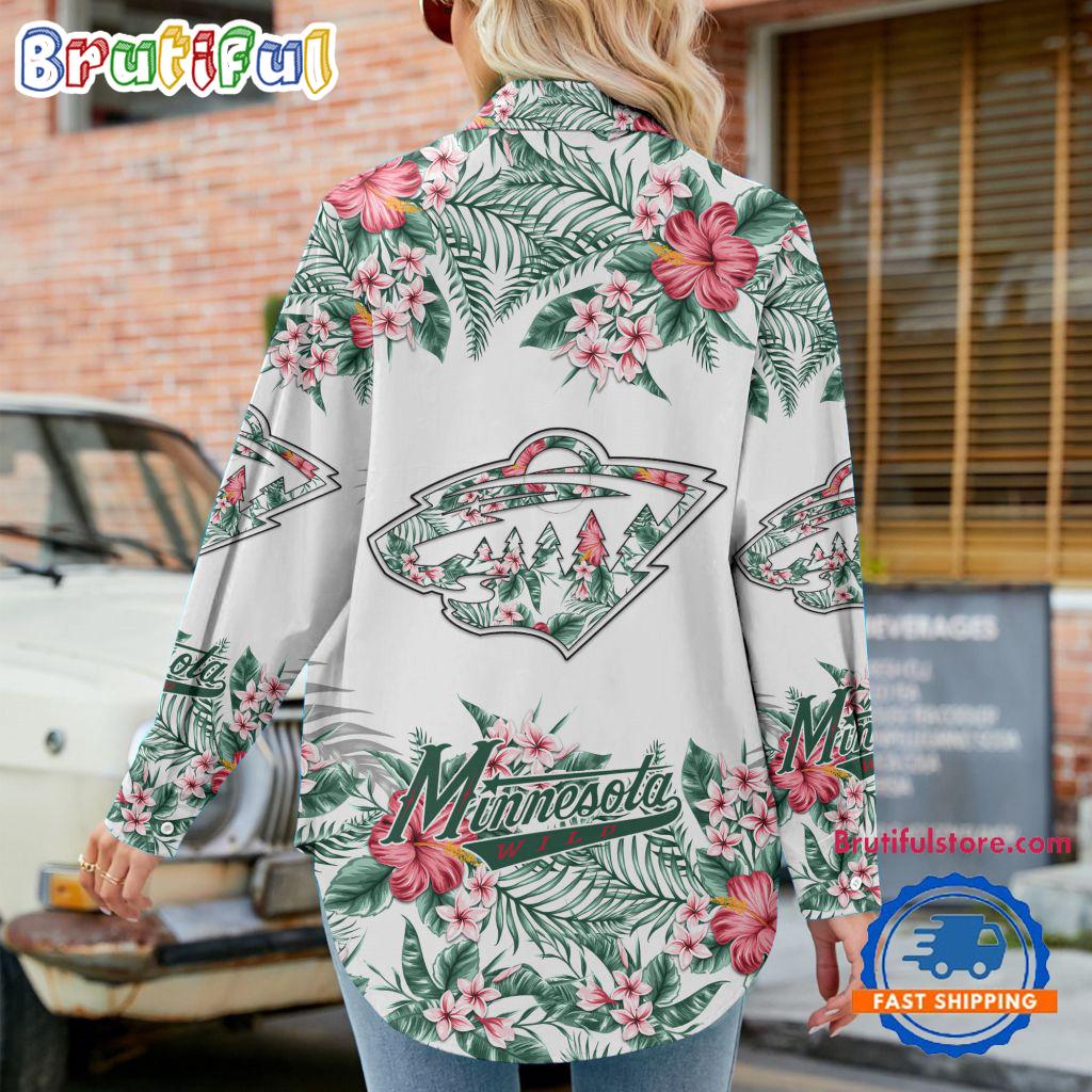 Product details: NHL Minnesota Wild Special Hockey Team Hawaiian Design Women’s Casual Shirt