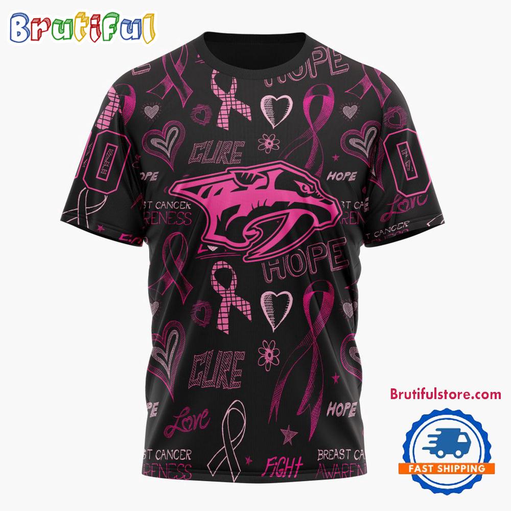 NHL Nashville Predators Special Pink Breast Cancer Awareness New Design T Shirt The 3D Hoodie is a fashion statement that goes beyond the ordinary. Using advanced printing technology, it brings designs to life with depth and vividness. Crafted from high-quality materials, it offers comfort and durability. The three-dimensional graphics create a captivating effect that’s perfect for casual wear or making a bold statement. Whether you’re expressing your fandom or showcasing your unique taste, the 3D Hoodie is a wearable work of art that sets you apart from the crowd. Embrace both style and individuality with this distinctive fashion piece.