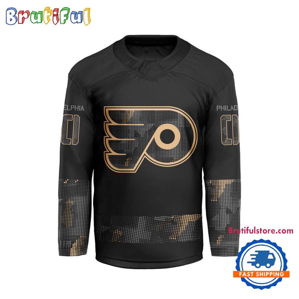 NHL Philadelphia Flyers Military Appreciation Design Hockey Jersey Introducing our Hockey Jersey, the perfect blend of durability and style. Made from high-quality, breathable fabric, it ensures maximum comfort and performance on the field. The bold colors and detailed design capture the essence of your team spirit. Whether you’re playing or cheering from the stands, our Hockey Jersey lets you show your passion with pride.