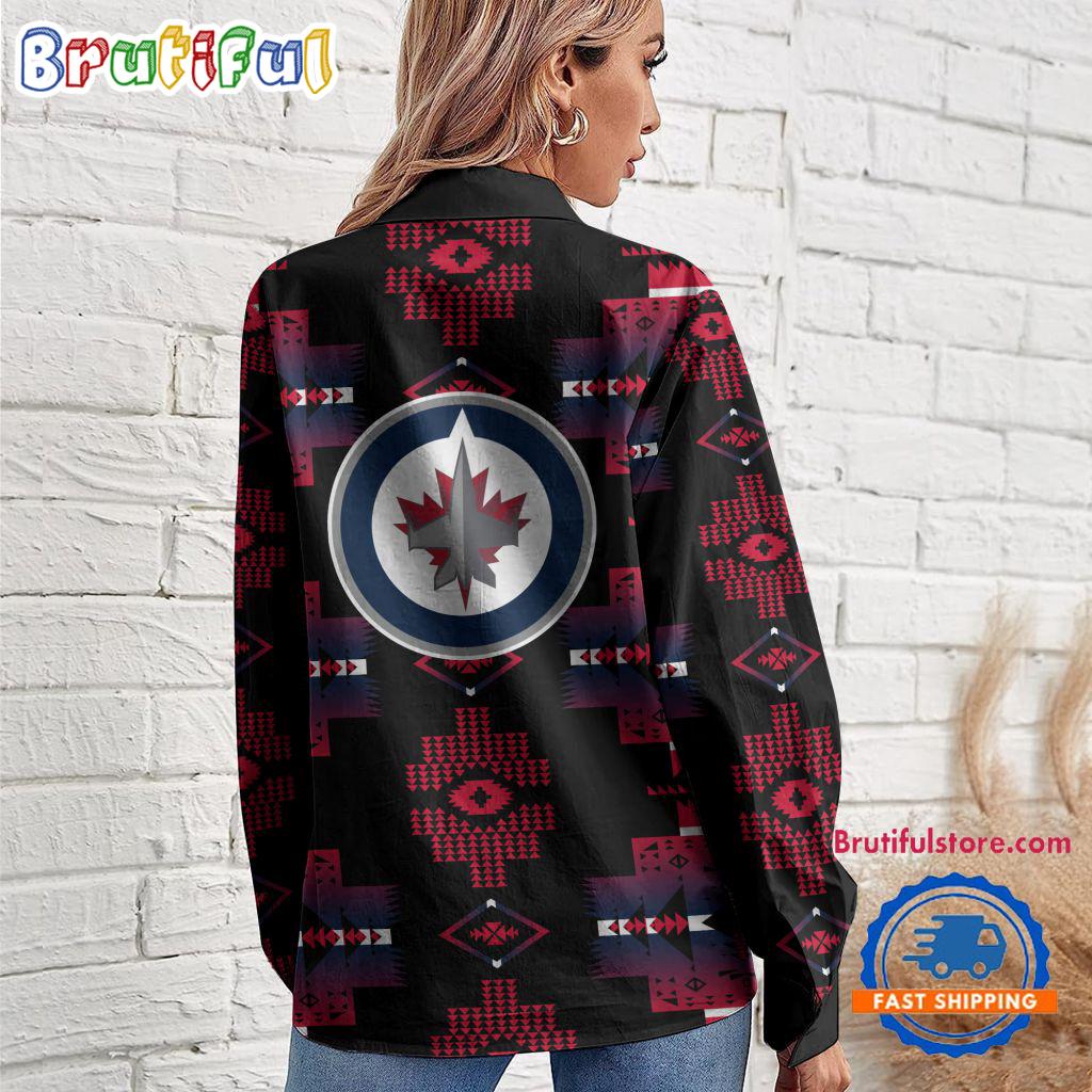 Photos Of NHL Winnipeg Jets Special Native American Women’s Casual Shirt, Hockey Women’s Casual Shirt