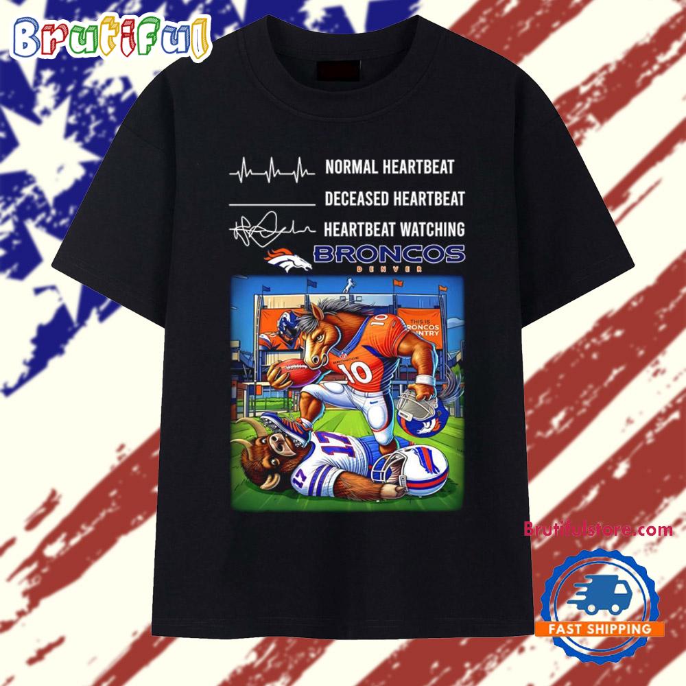 Normal heartbeat deceased heartbeat heartbeat watching Denver Broncos 2026 AFC Divisional Playoffs mascot T Shirt Make a bold statement with our 2D Shirt. Crafted from premium, lightweight fabric, it offers all-day comfort and a modern fit. Featuring eye-catching, high-resolution designs, this shirt is perfect for casual wear or standing out at events. Style meets personality with this unique wardrobe must-have.