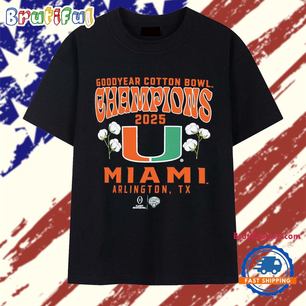Photos Of Official Miami Hurricanes CFP 2025 Cotton Bowl Champions T Shirt