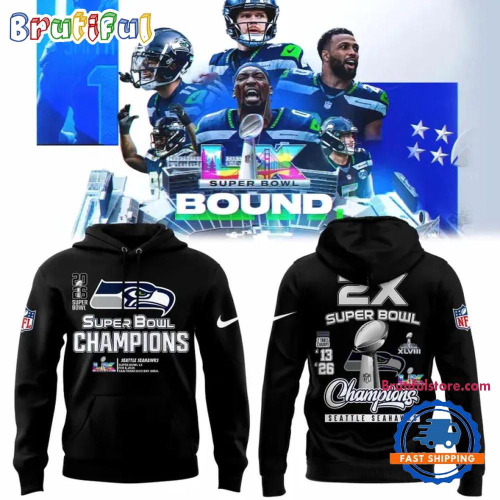 Photos Of Official Seattle Seahawks Super Bowl LX Champions 2026 Black Hoodie