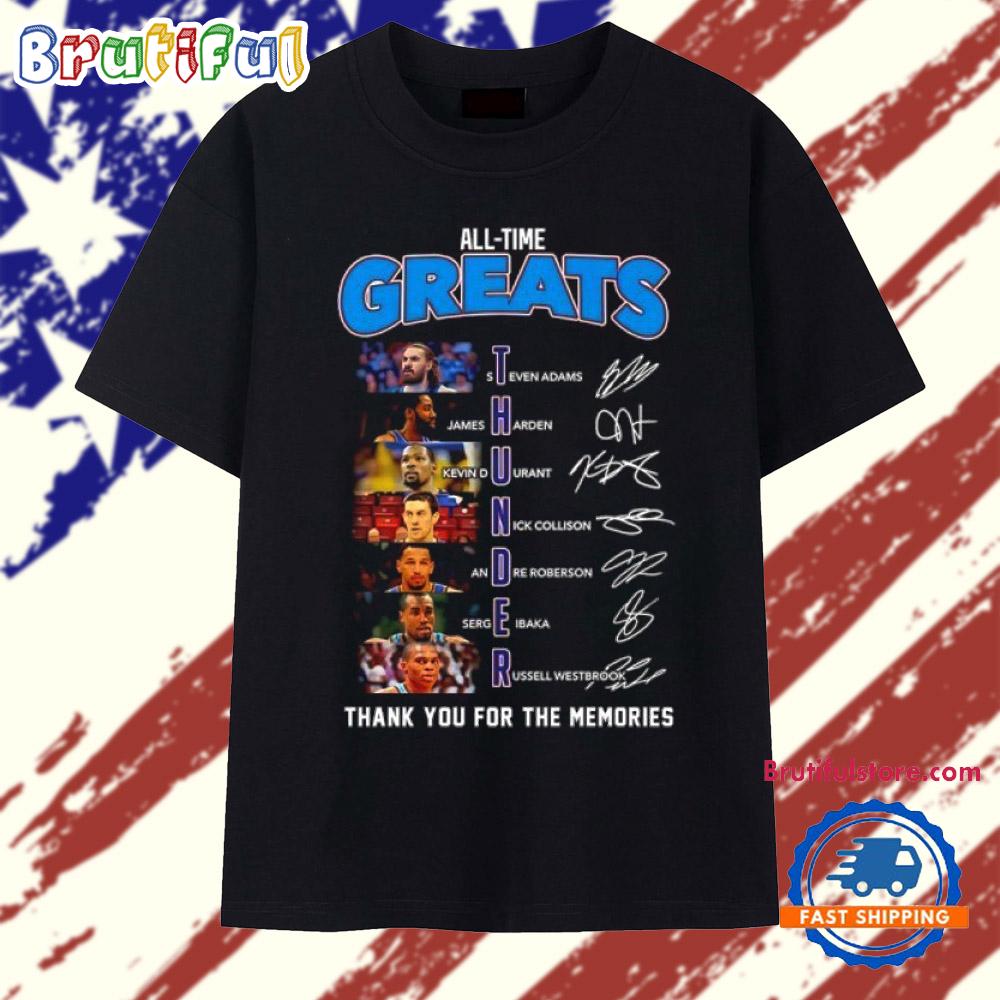 Oklahoma City Thunder all-time greats thank you for the memories signatures 2026 T Shirt Make a bold statement with our 2D Shirt. Crafted from premium, lightweight fabric, it offers all-day comfort and a modern fit. Featuring eye-catching, high-resolution designs, this shirt is perfect for casual wear or standing out at events. Style meets personality with this unique wardrobe must-have.