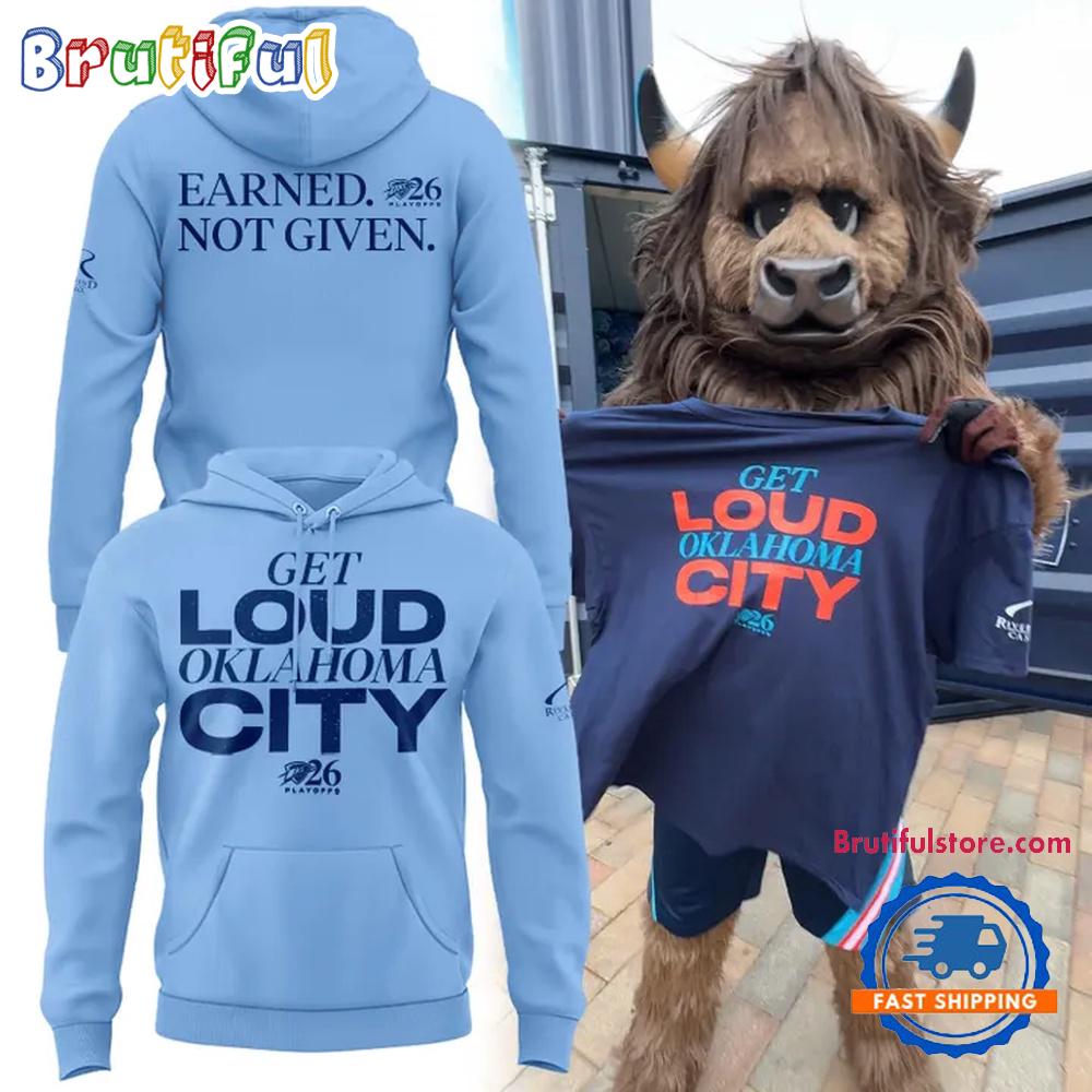 Photos Of Oklahoma City Thunder Playoffs Earned Not Given 2026 Light Blue Hoodie