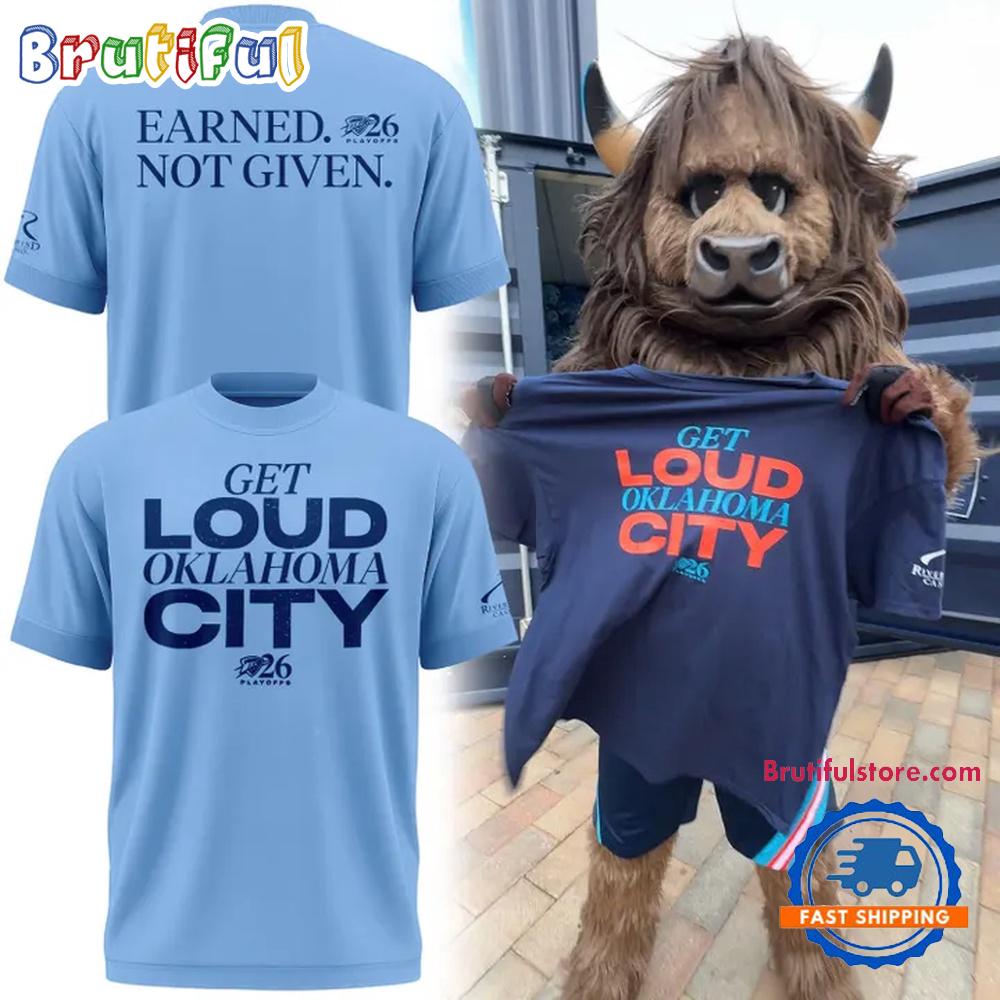Photos Of Oklahoma City Thunder Playoffs Earned Not Given 2026 Light Blue T Shirt