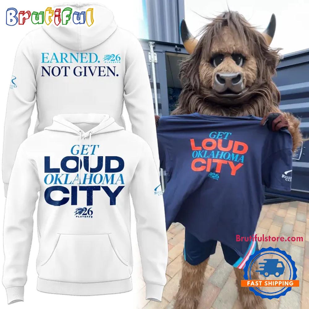 Photos Of Oklahoma City Thunder Playoffs Earned Not Given 2026 White Hoodie