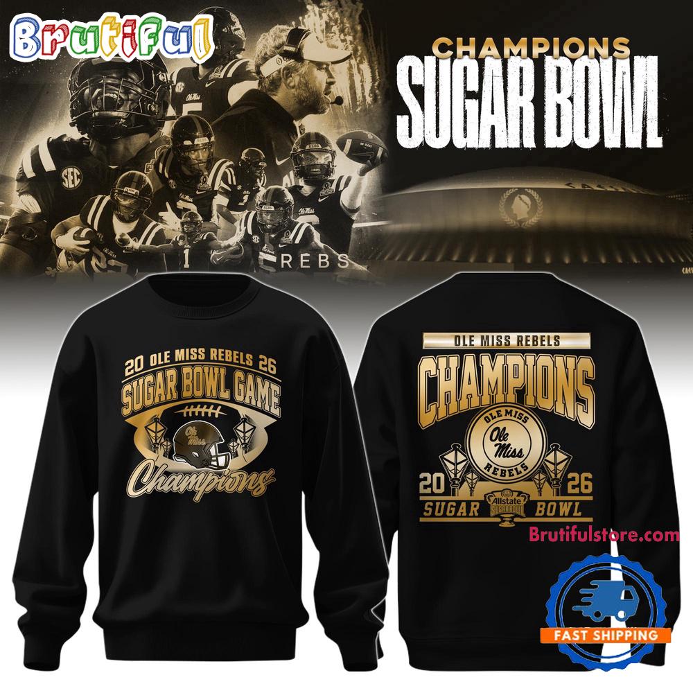 Product details: Ole Miss Rebels 2026 Sugar Bowl Game Champions Gold Black Sweatshirt