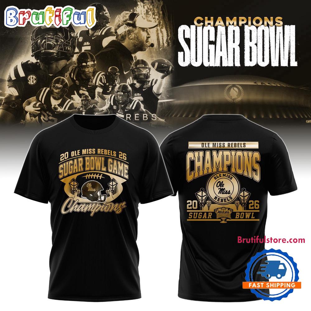 Product details: Ole Miss Rebels 2026 Sugar Bowl Game Champions Gold Black T Shirt