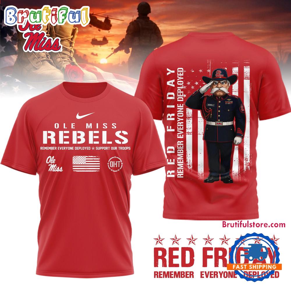 Product details: Ole Miss Rebels NCAA Red Friday Remember Everyone Deployed Limited 3D Shirt