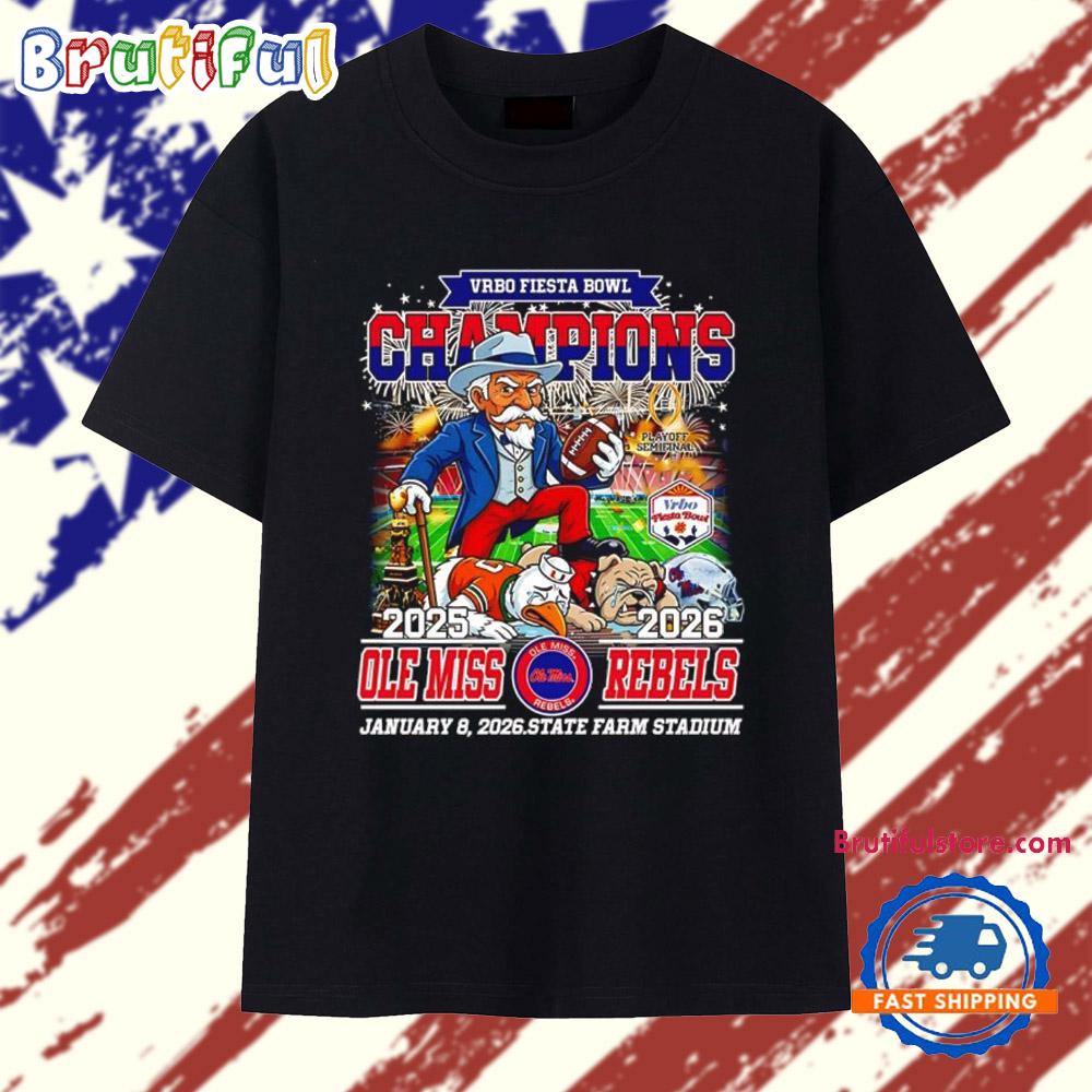Product details: Ole Miss Rebels Vrbo Fiesta Bowl Champions 2026 mascot T Shirt