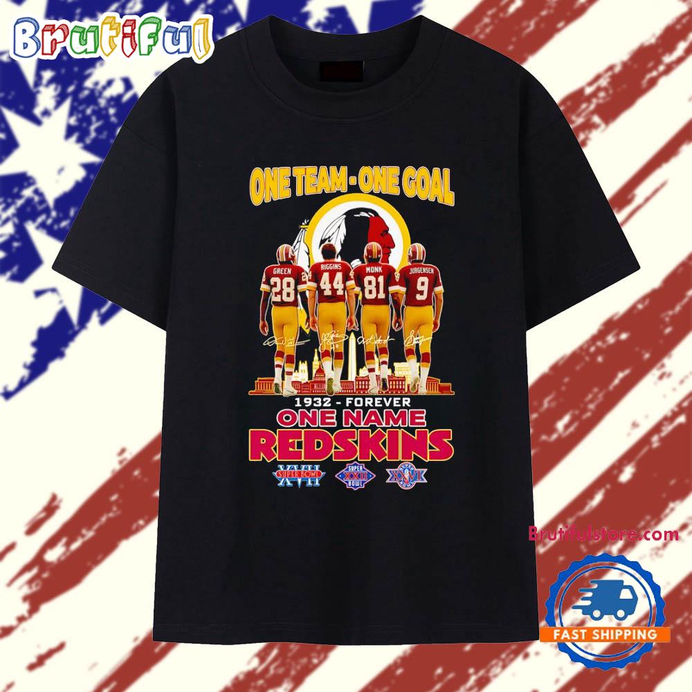 One team one goal one name Washington Redskins forever 1932 signature T Shirt Make a bold statement with our 2D Shirt. Crafted from premium, lightweight fabric, it offers all-day comfort and a modern fit. Featuring eye-catching, high-resolution designs, this shirt is perfect for casual wear or standing out at events. Style meets personality with this unique wardrobe must-have.