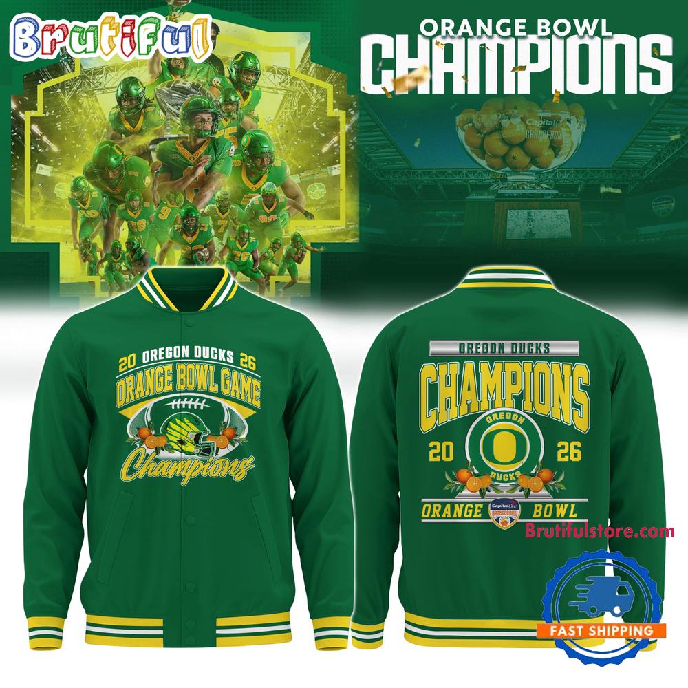Oregon Ducks Football 2026 Orange Bowl Champions Limited Edition Green Bomber Jacket The Baseball Jacket, a timeless blend of sporty charm and classic style, exudes versatility and vintage appeal. Crafted from durable yet comfortable materials, it features the iconic design elements of baseball attire, including a button-up front and ribbed cuffs and hem. With its casual yet polished look, it complements various outfits, from casual jeans to a more refined ensemble. Available in a range of colors and materials, it adds a touch of retro elegance to any wardrobe. Whether you’re cheering from the stands or out for a casual outing, the Baseball Jacket embodies a blend of athleticism and timeless fashion.