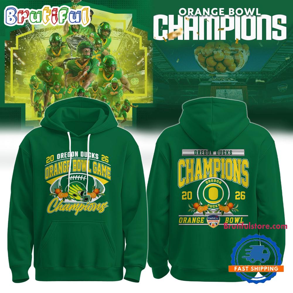 Product details: Oregon Ducks Football 2026 Orange Bowl Champions Limited Edition Green Hoodie