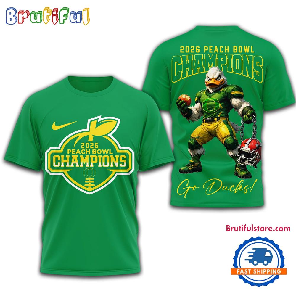 Oregon Ducks NCAA 2026 Peach Bowl Champions Green Design 3D Shirt The 3D Hoodie is a fashion statement that goes beyond the ordinary. Using advanced printing technology, it brings designs to life with depth and vividness. Crafted from high-quality materials, it offers comfort and durability. The three-dimensional graphics create a captivating effect that’s perfect for casual wear or making a bold statement. Whether you’re expressing your fandom or showcasing your unique taste, the 3D Hoodie is a wearable work of art that sets you apart from the crowd. Embrace both style and individuality with this distinctive fashion piece.
