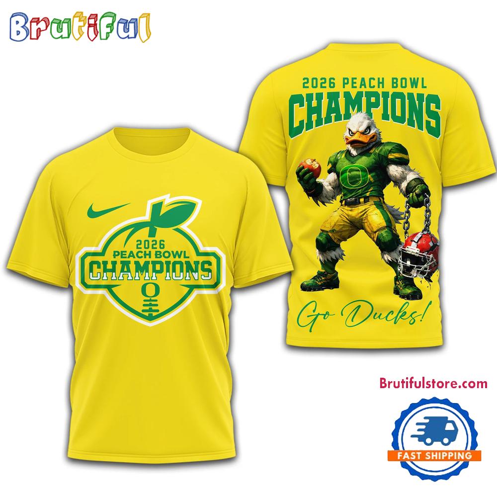 Oregon Ducks NCAA 2026 Peach Bowl Champions Yellow Design 3D Shirt The 3D Hoodie is a fashion statement that goes beyond the ordinary. Using advanced printing technology, it brings designs to life with depth and vividness. Crafted from high-quality materials, it offers comfort and durability. The three-dimensional graphics create a captivating effect that’s perfect for casual wear or making a bold statement. Whether you’re expressing your fandom or showcasing your unique taste, the 3D Hoodie is a wearable work of art that sets you apart from the crowd. Embrace both style and individuality with this distinctive fashion piece.