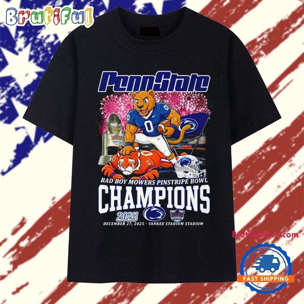 Penn State 2025 Bad Boy Mowers Pinstripe Bowl Champions mascot T Shirt Make a bold statement with our 2D Shirt. Crafted from premium, lightweight fabric, it offers all-day comfort and a modern fit. Featuring eye-catching, high-resolution designs, this shirt is perfect for casual wear or standing out at events. Style meets personality with this unique wardrobe must-have.